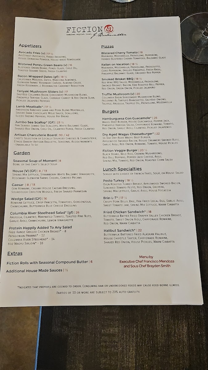 Welcome to Fiction @ J. Bookwalter, a culinary gem nestled in Richland, WA. This restaurant masterfully blends a sophisticated atmosphere with exquisite flavors, as reflected in rave reviews from delighted patrons. The talented kitchen is known for standout dishes such as the remarkable duck, tender pork chops, and a unique honey bourbon chicken that offers a delightful twist on a classic.